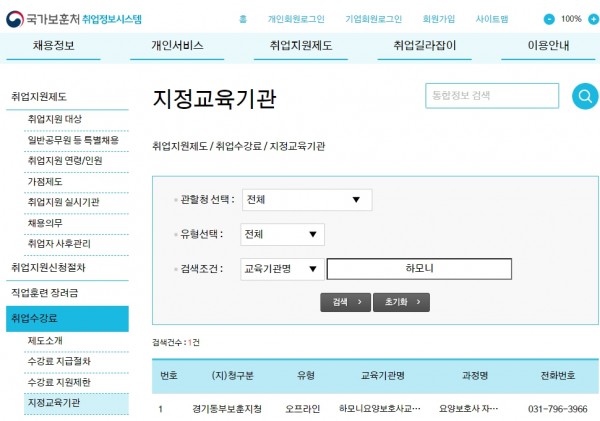 국가보훈처 취업지원제도 지정교육기관으로