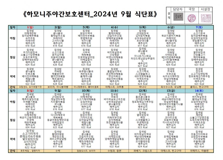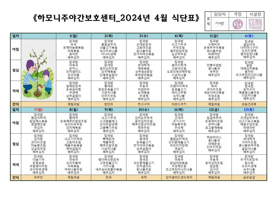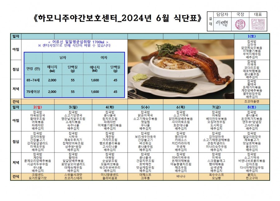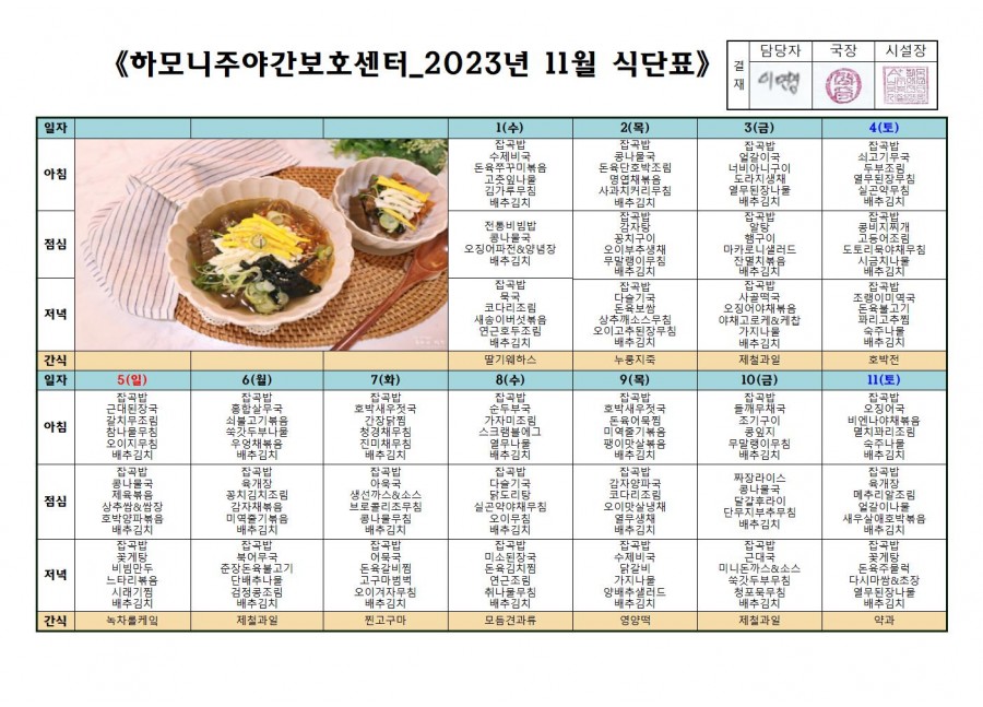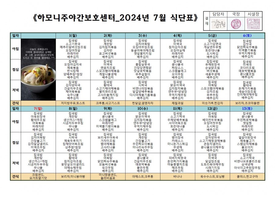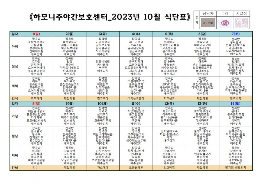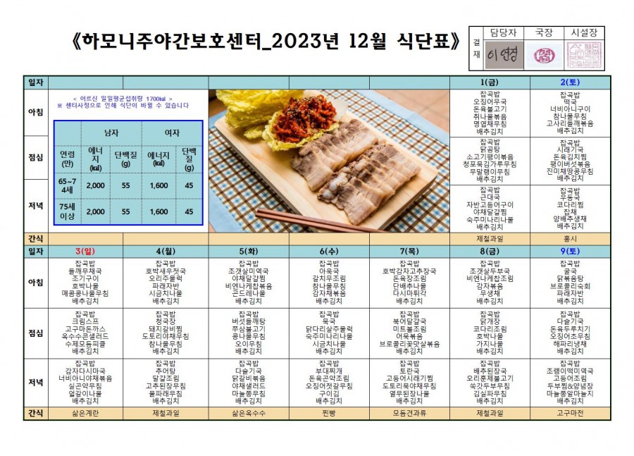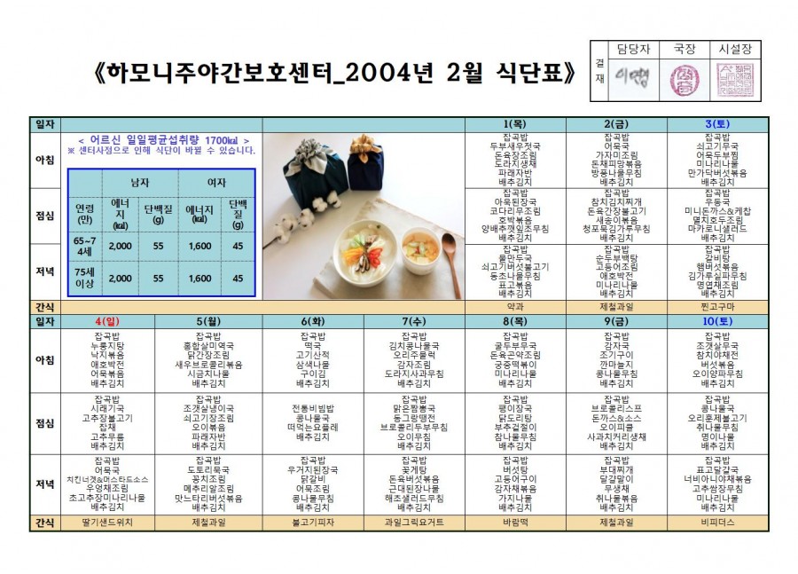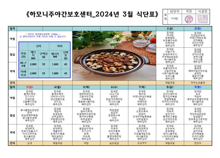 월간식단표(미사) 2 페이지