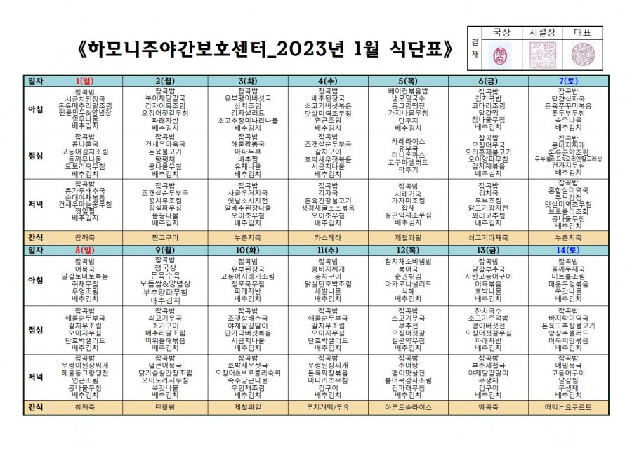 월간식단표(미사) 3 페이지