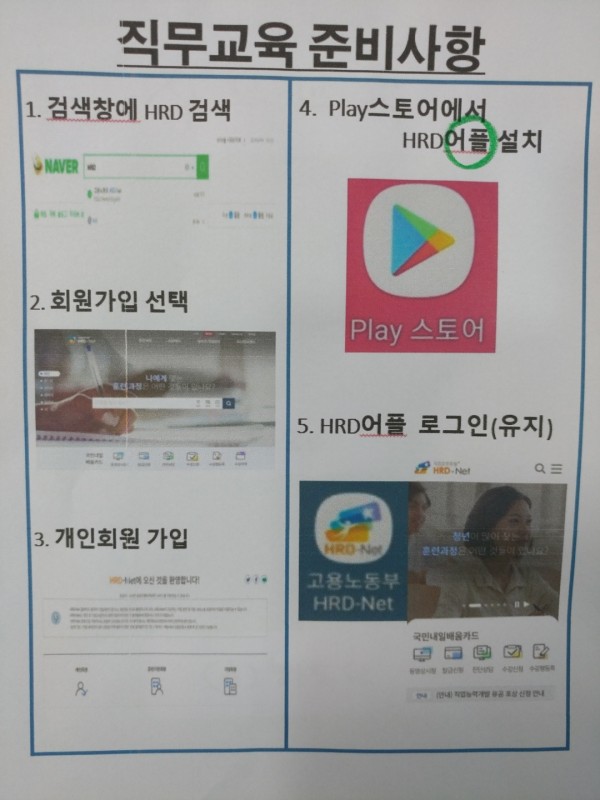 고용노동부 HRD 앱을 다운받아 가입하시고 교육일 당일 HRD QR로 출석 체크를 하오니 30분 일찍 오시기 바랍니다. ***