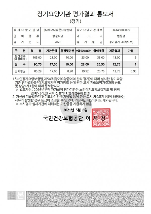 (A)하모니방문요양센터 최우수 평가결과 세무항목 올려드립니다.
